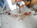 Lors d’une mauvaise manœuvre le miroir de la salle de bain c’est brisé et a malheureusement blessé la victime au bras. Le saignement a provoqué des projections et tâches sur différents supports.