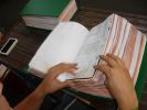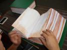 Puis une action de décongélation très minutieuse est exécutée avec la plus grande attention afin de ne pas fragiliser le document. Elle permet de retirer les intercalaires de glace. L'opération est éxecutée page à page.