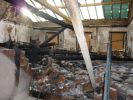 Suite à un sinistre incendie dans une pièce au 1er étage, le feu s’est propagé à la toiture qui s'est effondrée totalement détruite sur le plancher inférieur.